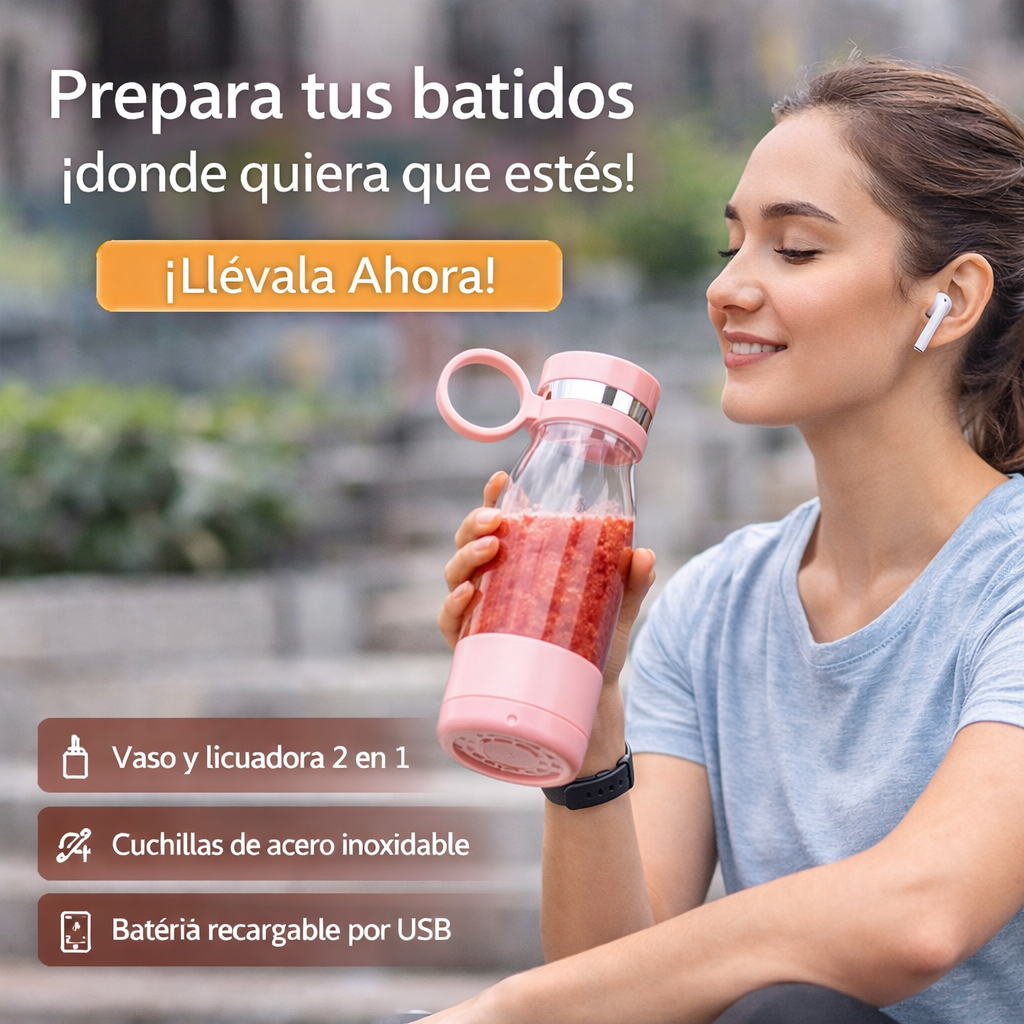La nueva Licuadora Portátil con Diseño de 4 Cuchillas llega para revolucionar tus mañanas, tus snacks post-entrenamiento y tus días agitados.